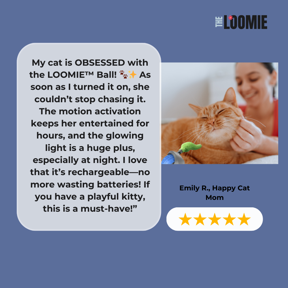 Iāve tried so many toys, but my cat would lose interest in minutesāuntil LOOMIEā¢! š» The way it moves and lights up keeps her engaged for hours. I love that itās rechargeable and automatically changes direction when she touches it. No more wasted money on ignored toys!
